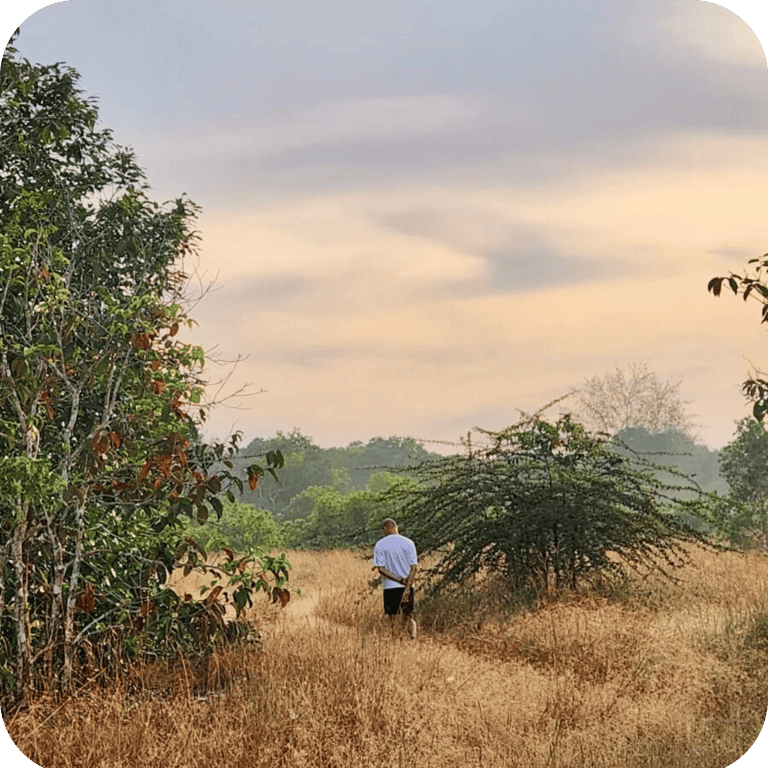 His guiding practice is shaped by his own personal healing journey and his relationship with nature. In 2025, he found himself learning how to slow down. In the quiet presence of trees and open skies, he began to soften. Nature became a steady companion, a place where he could breathe differently and remember that he did not have to carry everything alone.