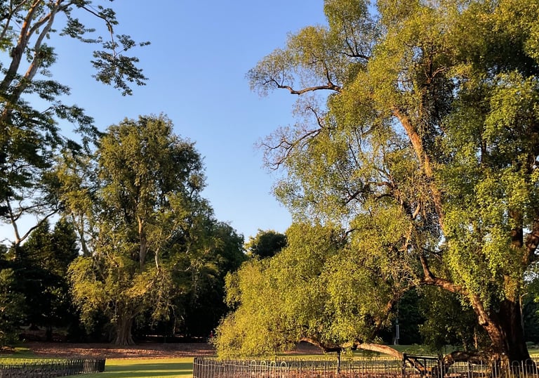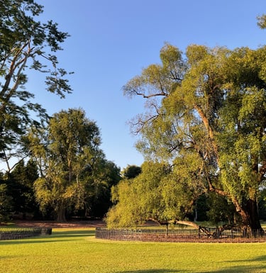 Sitting with the Sky invites you on quiet journey of meeting and noticing. Along the way, we'll be greeted by trees of many kinds, each with its own shape, texture and way of reaching for light. Spend time with these beings, and perhaps notice how they lean, breathe or hold space around them. Our steps will eventually lead us to an open space, where the sky stretches wide above us. Here, you're invited to rest your gaze upon the sky, dressed in the day's hues.